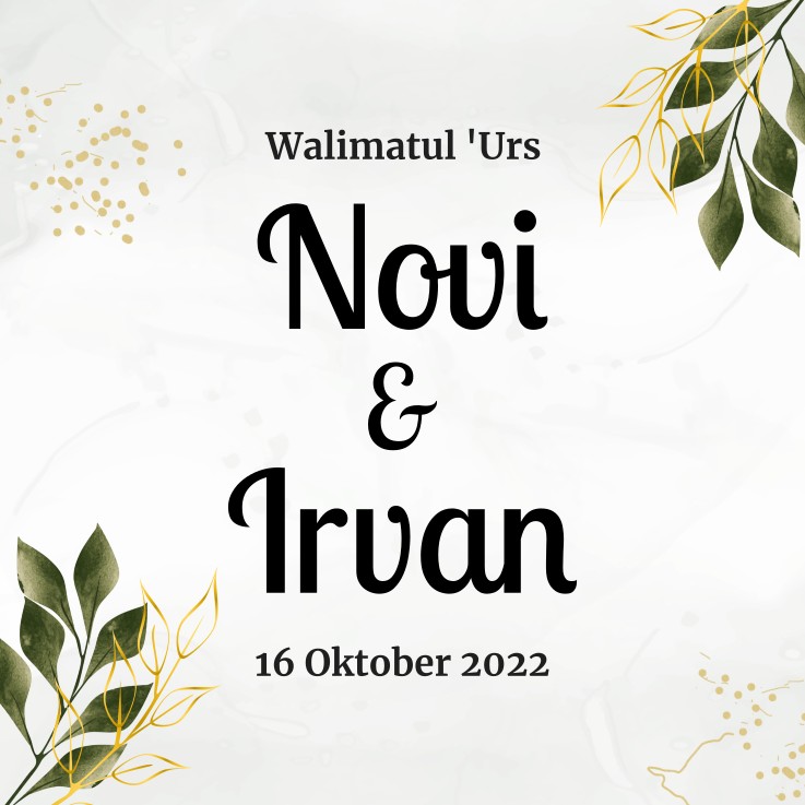 Walimatul ‘Urs Novi & Irvan 16 Oktober 2022 Swipe Up Assalāmu‘alaikum wa raḥmatullāhi wa barakātuh. Segala puji bagi Allah yang telah menciptakan mahkluk-Nya berpasang-pasangan. Kami bermaksud mengundang bapak/ibu/saudara/i dalam acara pernikahan kami: Novi Ani Dwi Putri Putri kedua dari Bapak M. Yani (alm) dan Ibu Sutrini & M. Irvan Pratama Putra, S.Pd Putra pertama dari […]