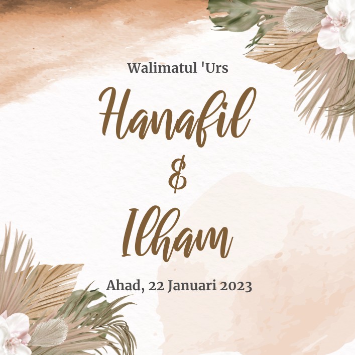 Walimatul ‘Urs Hanafil & Ilham Ahad, 22 Januari 2023 Swipe Up Assalāmu‘alaikum wa raḥmatullāhi wa barakātuh. Segala puji bagi Allah yang telah menciptakan mahkluk-Nya berpasang-pasangan. Kami bermaksud mengundang bapak/ibu/saudara/i dalam acara pernikahan kami: Hanafil Lutfia Anisa Putri kedua dari Bapak Musa(Alm) dan Ibu Widarsih (Almh) & Muhamad Ilham Rosid Putra kedua dari Bapak Sungkono dan […]