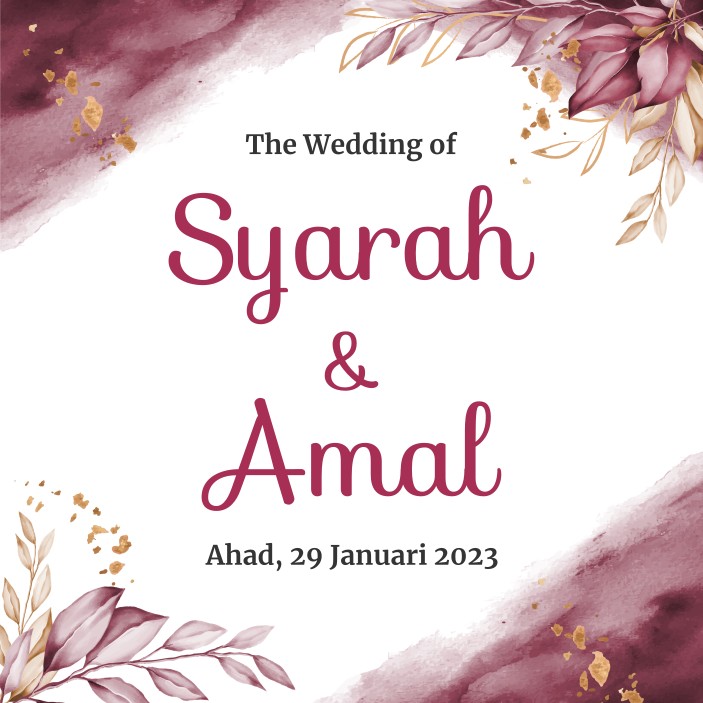 Swipe Up Assalāmu‘alaikum wa raḥmatullāhi wa barakātuh. Segala puji bagi Allah yang telah menciptakan mahkluk-Nya berpasang-pasangan. Kami bermaksud mengundang bapak/ibu/saudara/i dalam acara pernikahan kami: Syarah Salsabila Sariful Putri kedua dari Bapak Sariful Latang dan Ibu Dian Ummu Abdillah & Amal Khafif Putra kedua dari Bapak Khalimin dan Ibu Juwaeriyah Yang insyaAllah akan diselenggarakan pada: Ahad […]
