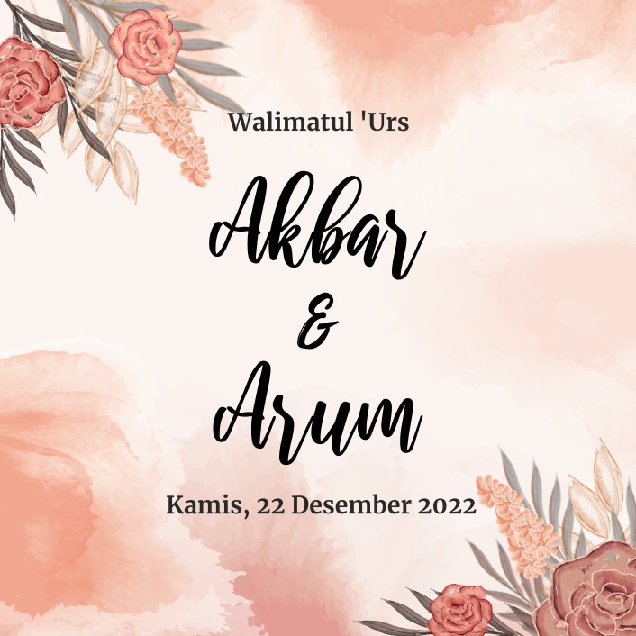 Walimatul ‘Urs Arum & Akbar Kamis, 22 Desember 2022 Swipe Up Assalāmu‘alaikum wa raḥmatullāhi wa barakātuh. Segala puji bagi Allah yang telah menciptakan mahkluk-Nya berpasang-pasangan. Kami bermaksud mengundang bapak/ibu/saudara/i dalam acara pernikahan kami: Arum Setiarti Putri dari Bapak Mujiyono dan Ibu Sri Hartuti & Akbar Ali Mustofa Putra dari Bapak Ajib dan Ibu Sutijah Yang […]