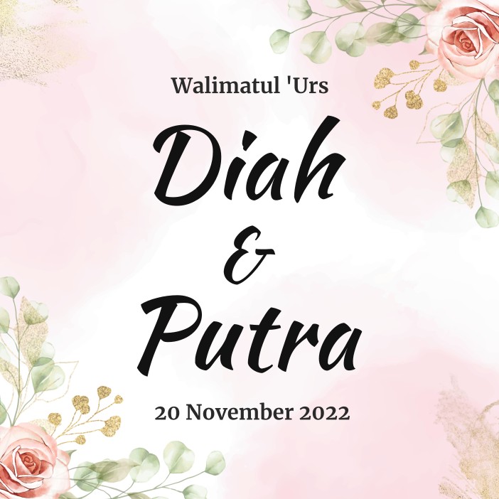 Walimatul ‘Urs Diah & Putra 20 November 2022 Swipe Up Assalāmu‘alaikum wa raḥmatullāhi wa barakātuh. Segala puji bagi Allah yang telah menciptakan mahkluk-Nya berpasang-pasangan. Kami bermaksud mengundang bapak/ibu/saudara/i dalam acara pernikahan kami: Diah Ayu lestari Putri ketiga dari Bapak Sukino dan Ibu Suriptiani & Moh Putra Pradipta Duwila Putra pertama Bapak Jalal Duwila, S. H […]